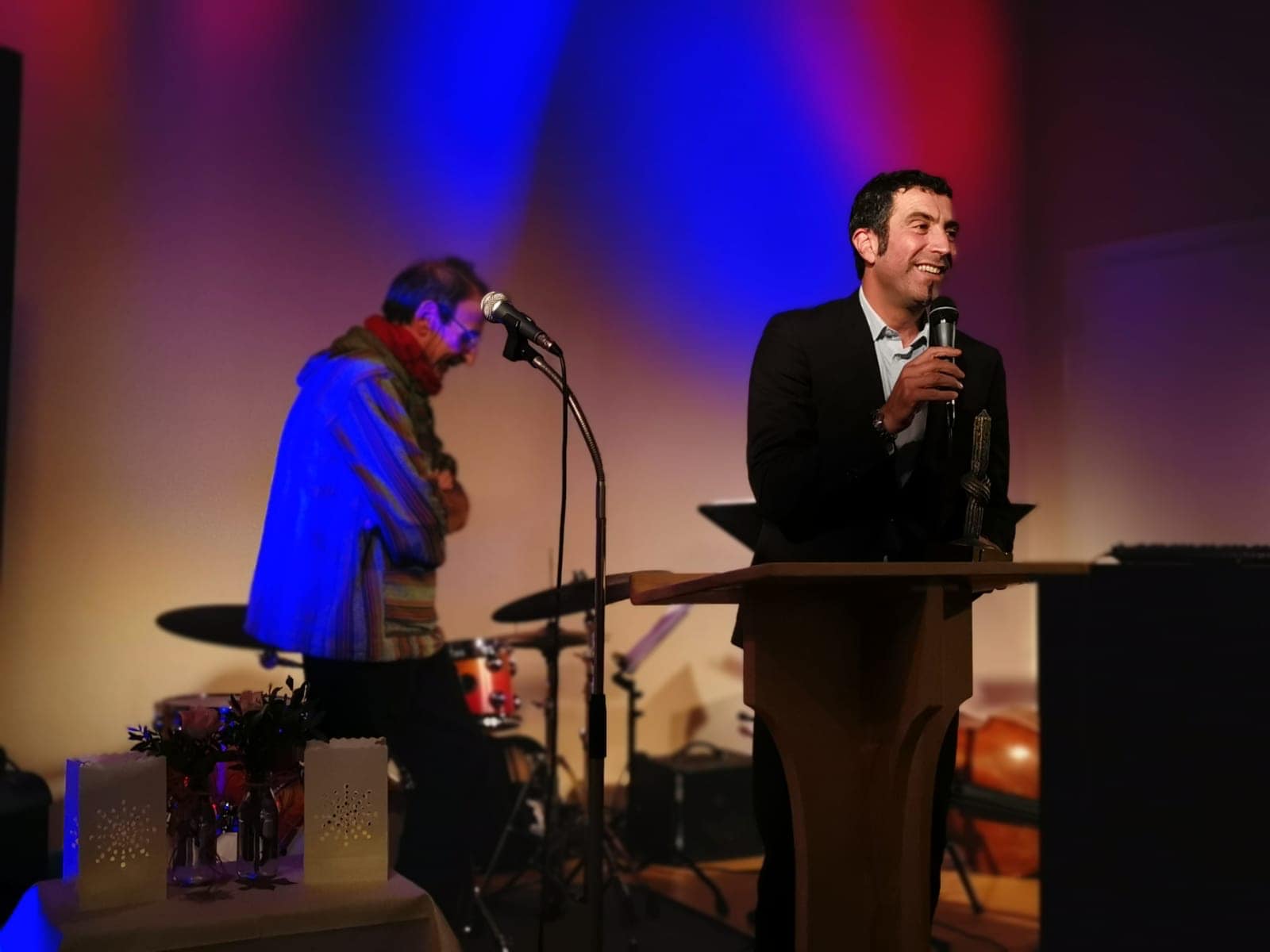2015 Ibrahim Yetim (SPD-Landtagsabgeordneter) und Freddy Fischer (Unterstützer der Moerser Flüchtlingshilfe im Projekt »Bildung – ein Grundrecht für Flüchtlinge«)